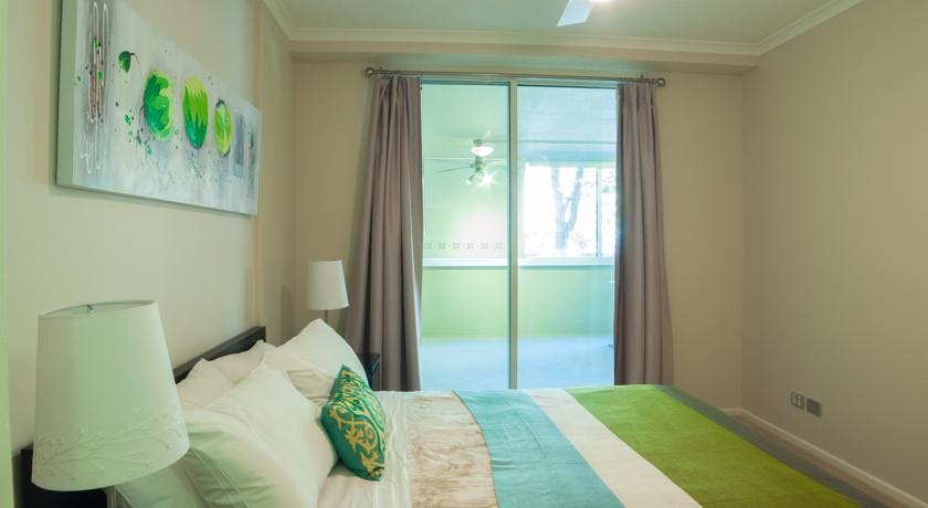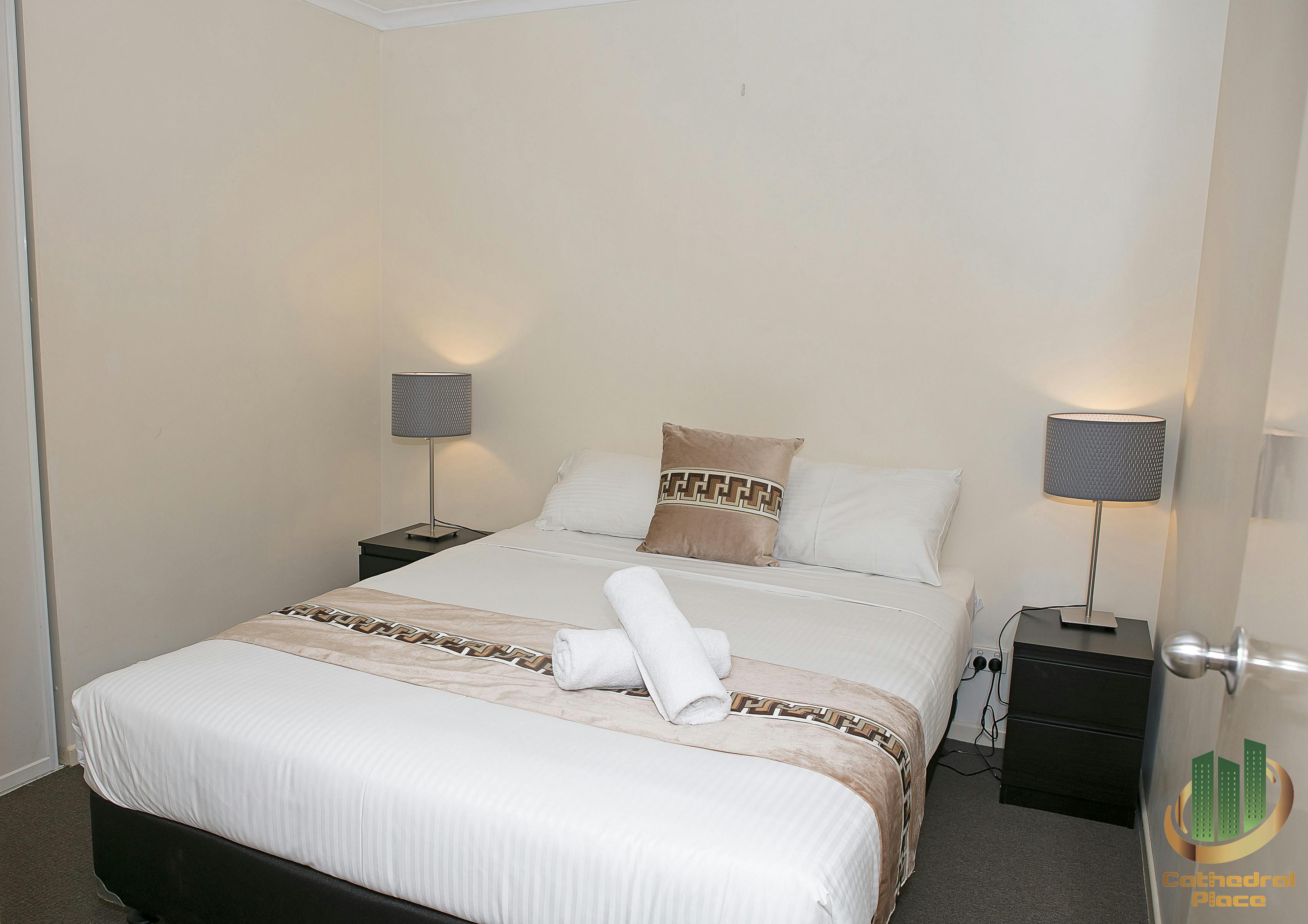 Our Two bedroom fully self contained apartment features a private patio with city and garden views. It also has a fully equipped kitchen and a living area with a flat-screen TV. The spacious bedrooms include a single private bathroom, balcony and walk-in wardrobe.