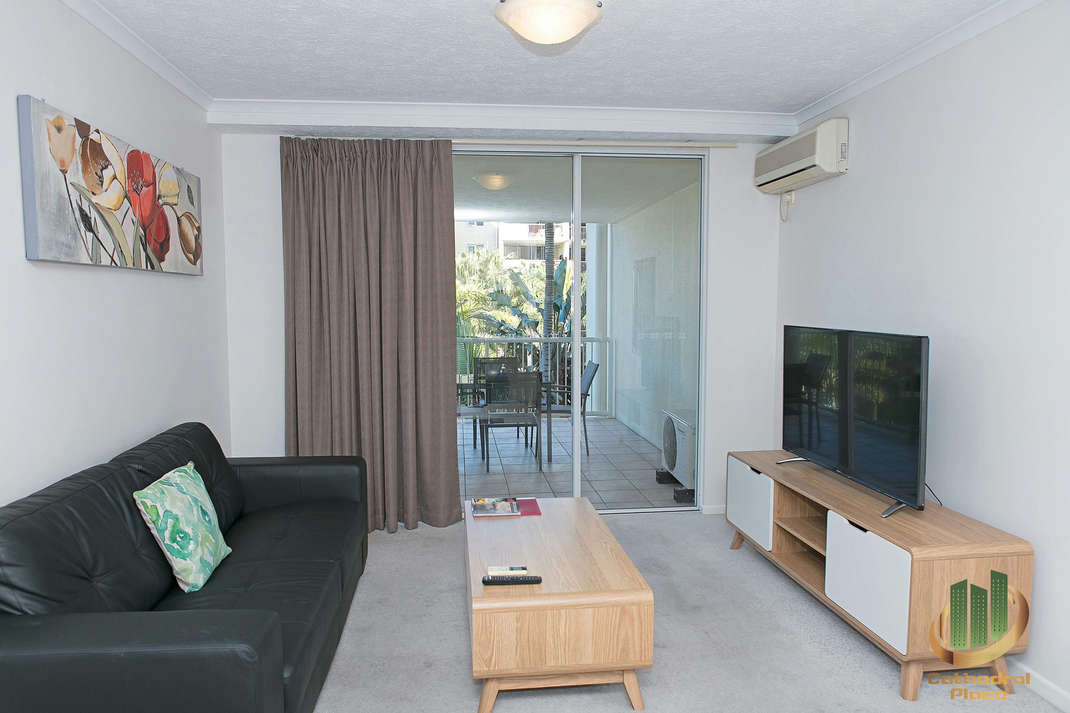 Our rustic, fully serviced self contained one bedroom apartments feature a spacious living room, a fully equipped kitchen, flat screen Smart TV, private balcony and laundry facilities